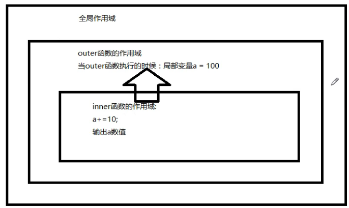 当outer第一次执行的时候,声明了一个局部变量a=100,以及声明了第一个inner函数并且返回inner的声明部分
