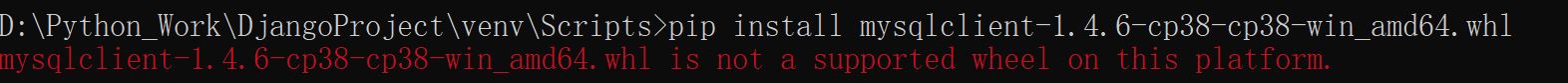 然后将whl文件名字改掉(改成你对应命令行中的名字),我这里是改成mysqlclient-1.4.6-cp38-cp38m-win_amd64.whl(比之前多了个m)然后再用pip install的命令就可以了。