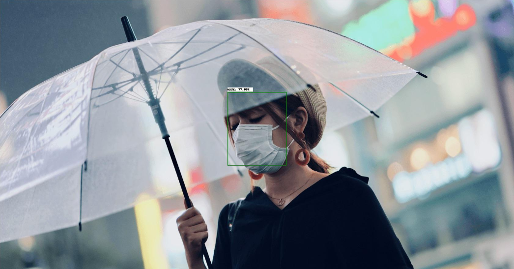 2、口罩检测,检测在密集人流区域中携带和未携戴口罩的所有人脸,同时判断该者是否佩戴口罩。