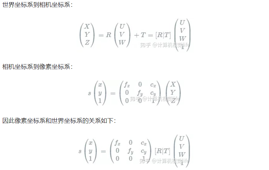 物体相对于相机的姿态可以使用旋转矩阵和平移矩阵表示。可以用世界坐标系,相机坐标系,像素坐标系等等。