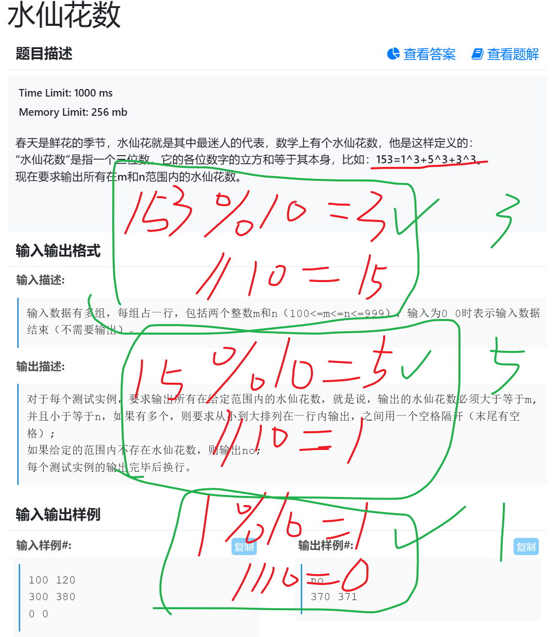 //判断求和是否等于本身,要用一个数标记全部中有无水仙花
