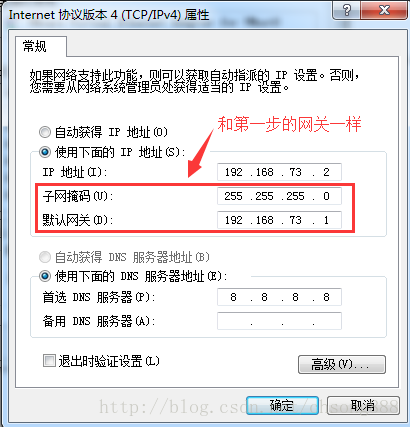 注:上面的“使用本地DHCP服务……”这一项是没有钩选的