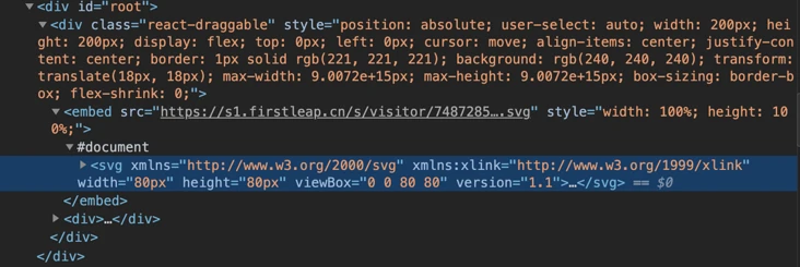 此时我们理论上已经实现了 dom 元素的拖拽和缩放,但是在添加了 svg 图片之后我们很快发现,由于外层的拖拽是由 document.addEventListener 来实现的,但是我们在 mouseDown 的时候,鼠标点击的位置实际上是 svg 内的 document。