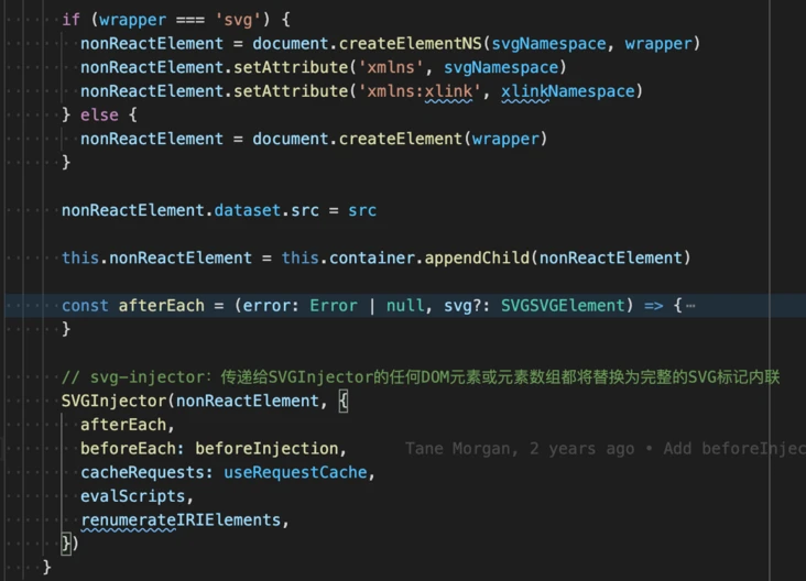 有了把 svg 的 document 取出来的思路,我们很容易能找到一个插件:react-svg,它的实现思路与我们上面提到的完全一致,此处贴上它的核心代码供各位查看: