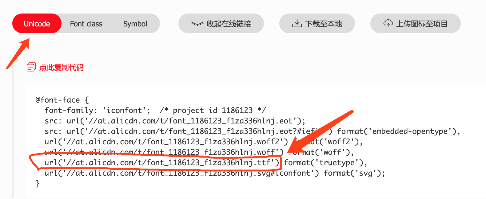 载入的字体文件ttf文件,url前面一定得有协议头,如http,iconfont上面是没有协议头的,应该是为了自适应支持https