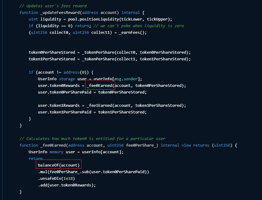 进入到_updateFeesReward函数,这里我们一步一步看。