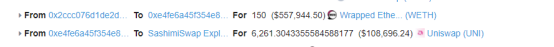 攻击者把闪电贷借出的WETH兑换为uni,放进自己的“钱包”,第一次获利。