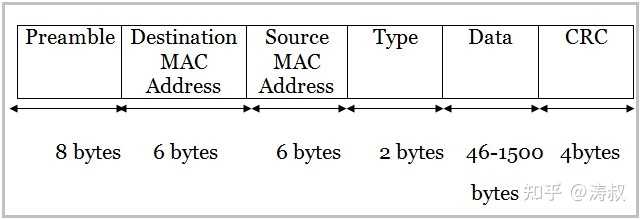 这里首次出现了地址这个概念。正是因为总线网线中所有设备共享总线,所以需要通过引入地址的概念来区分不同的设备。对于以太网,这个地址就是我们常说的MAC地址。这个时候的「猫」就已经变成了我们现在常说的网卡了。以太网规定MAC地址占6个字节,也就前面说的48位。