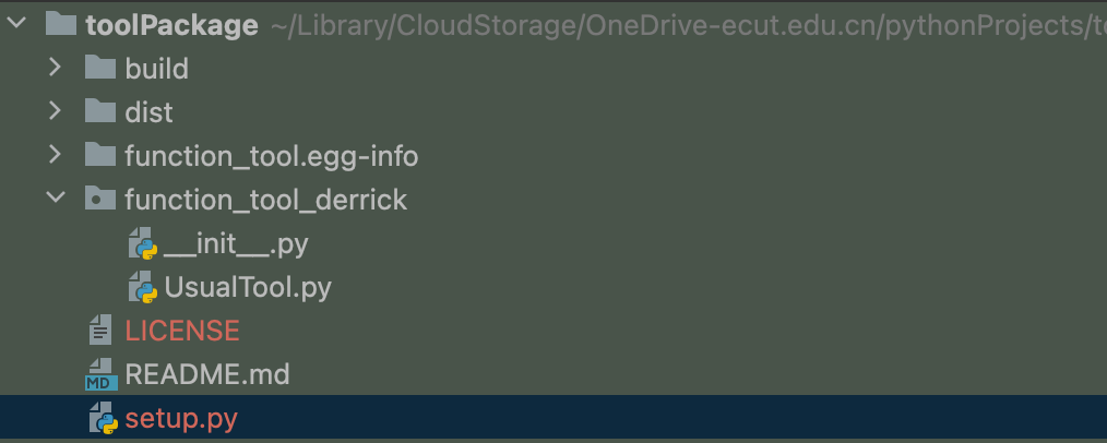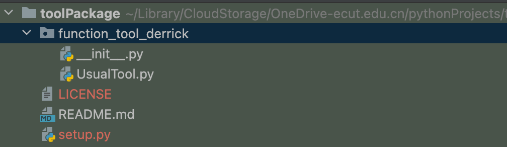 如图所示,function_tool_derrick为包的代码,外层再套一层目录,一般使用相同的名称(我这里用了不同名称)