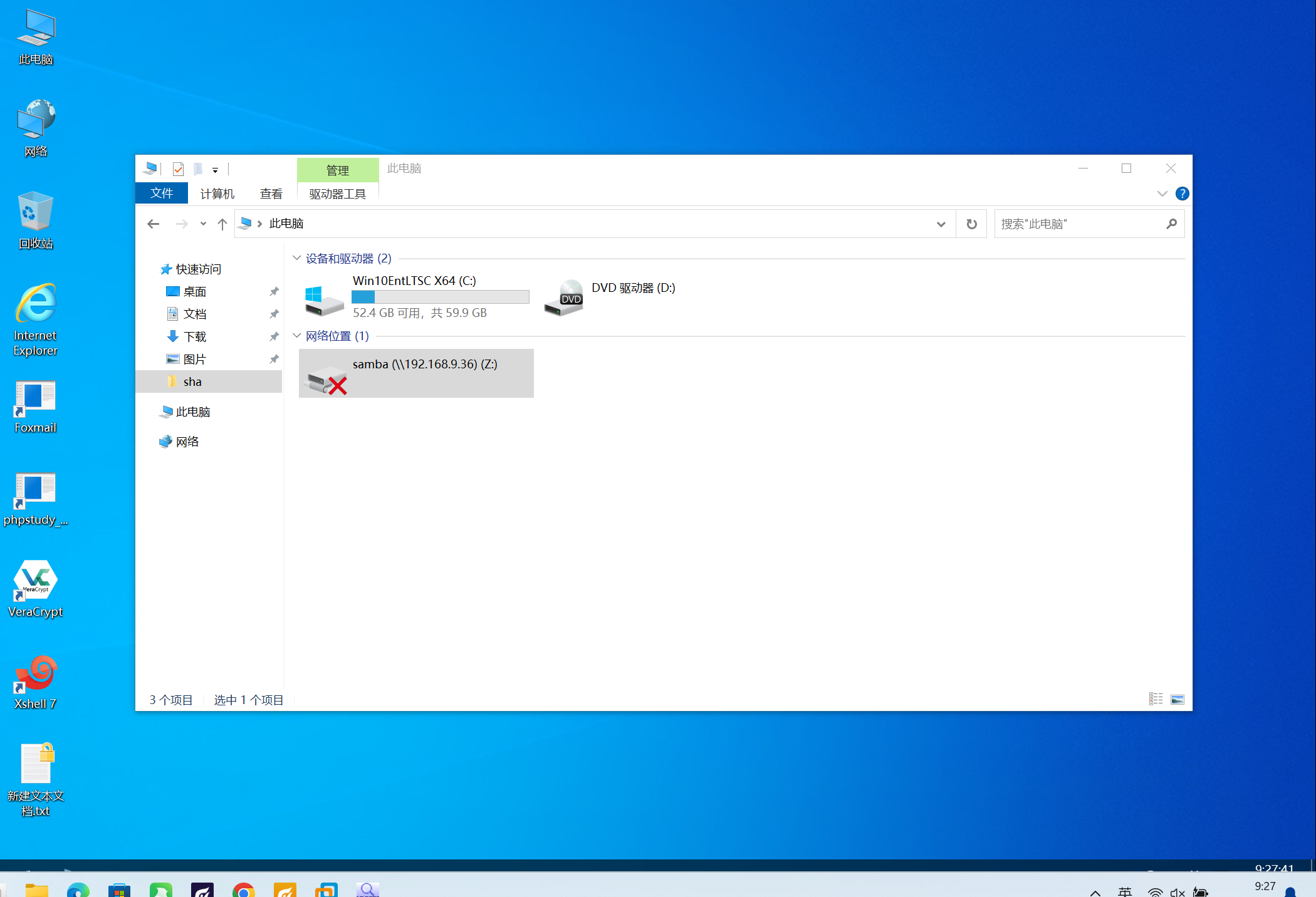 要将z盘给连接上,先启动服务器,确定服务器的ip,资源管理器找到网络输入\服务器ip\samba,输入密码就可以连上了