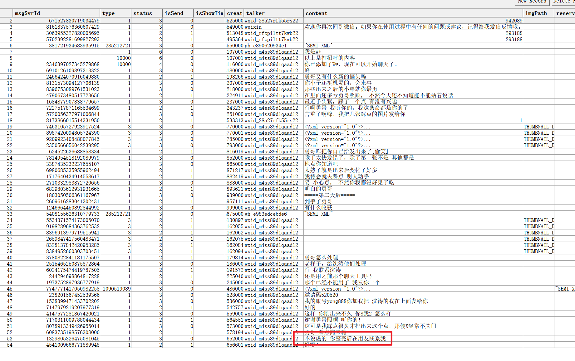 机主微信数据库message表的聊天记录里提到后续在用友联系
