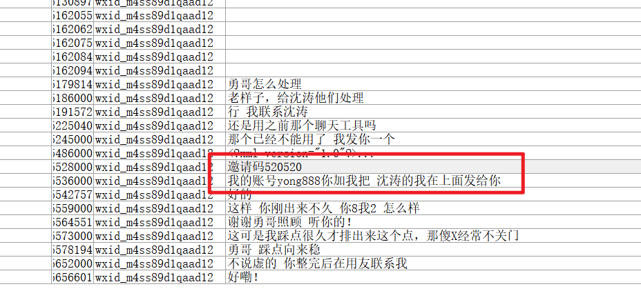 再通过id到sender_nick表里找对应的发送者,yong888在微信聊天记录里提到是勇哥,另一个确定为机主