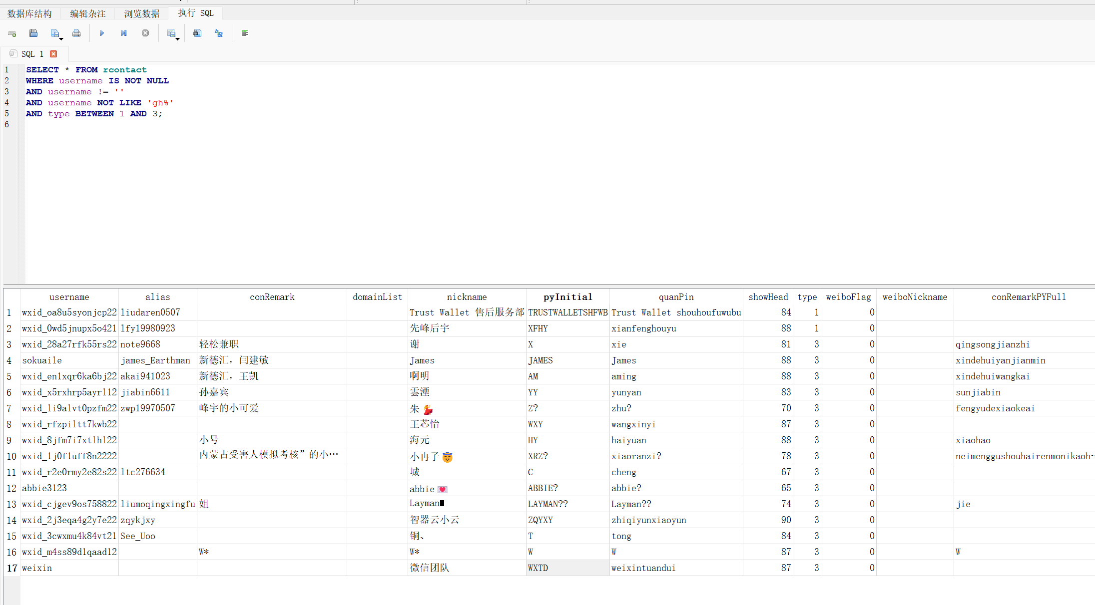 在rcontact表里发现用户信息,mysql语句进行筛选