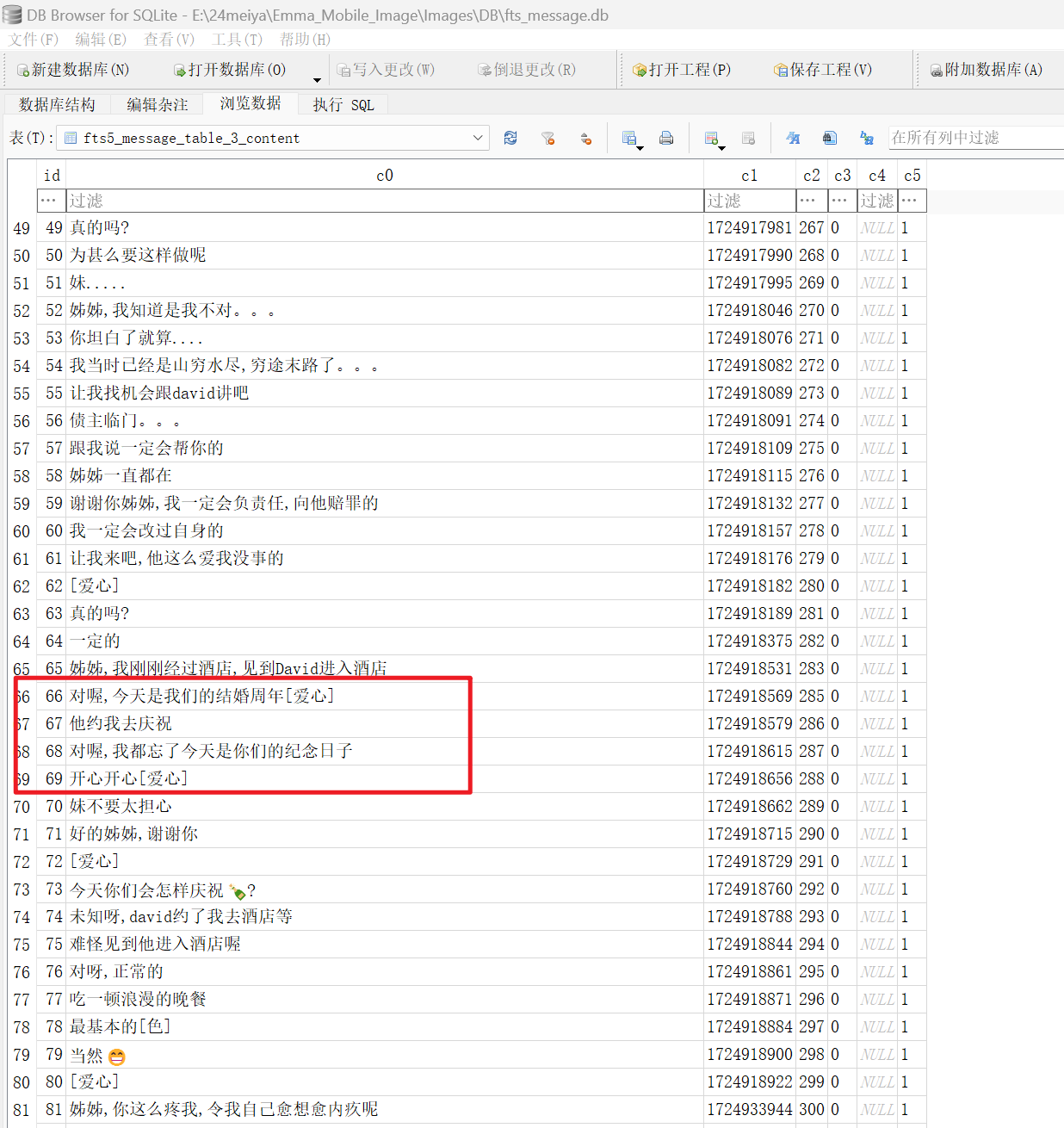 径:\Images\DB\fts_message.db,在fts5_message_table_3_content表里找到了Clara和Emma的
