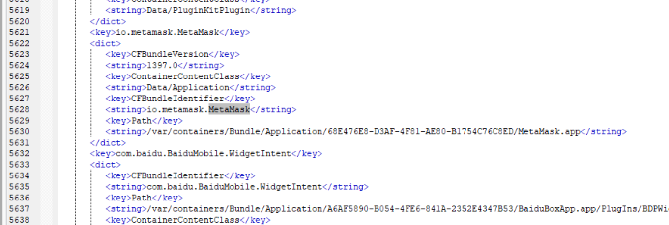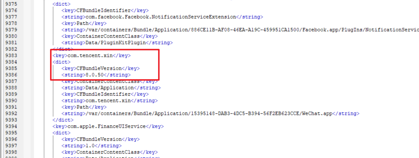 与之有关的是手机的清单文件,路径:\Images\plist\Manifest.plist,搜索微信包名