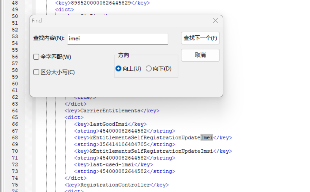 B正确,在plist目录下看到com.apple.commcenter.plist,配置文件涉及到系统服务,搜索imei就可以找到