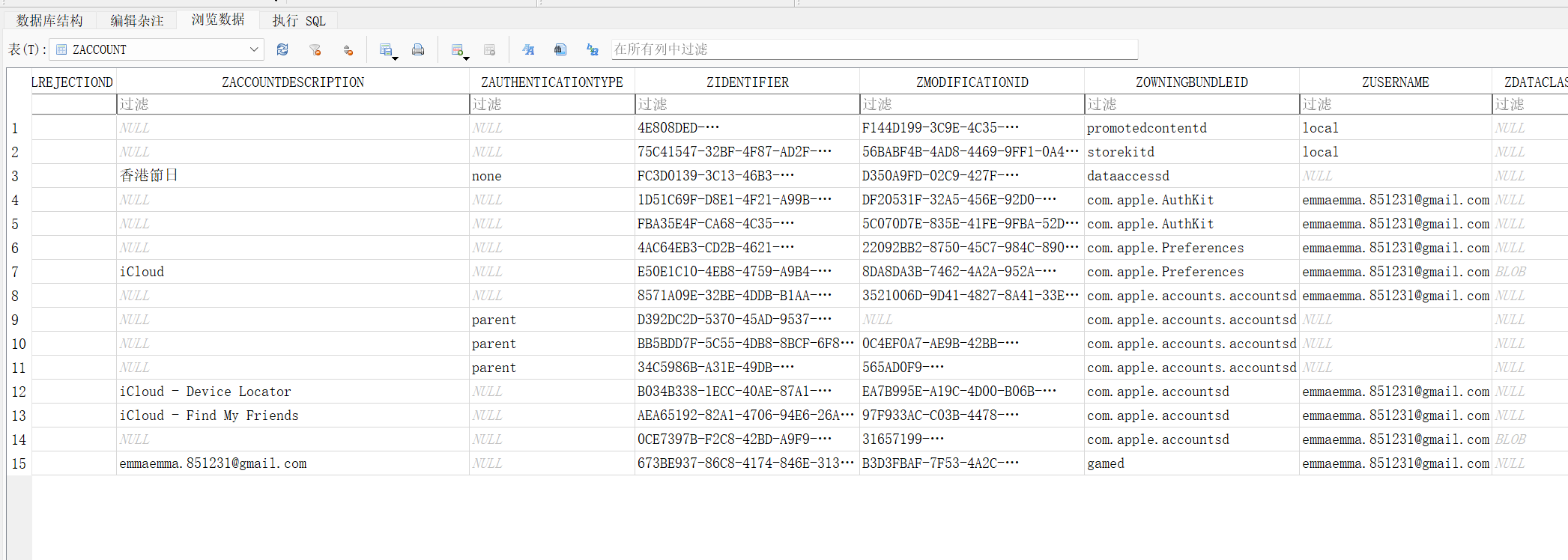 C错误,看到账号注册,想到在看数据库时看到account.sqlite,在该库里的ZACCOUNT表里找到对应的邮箱