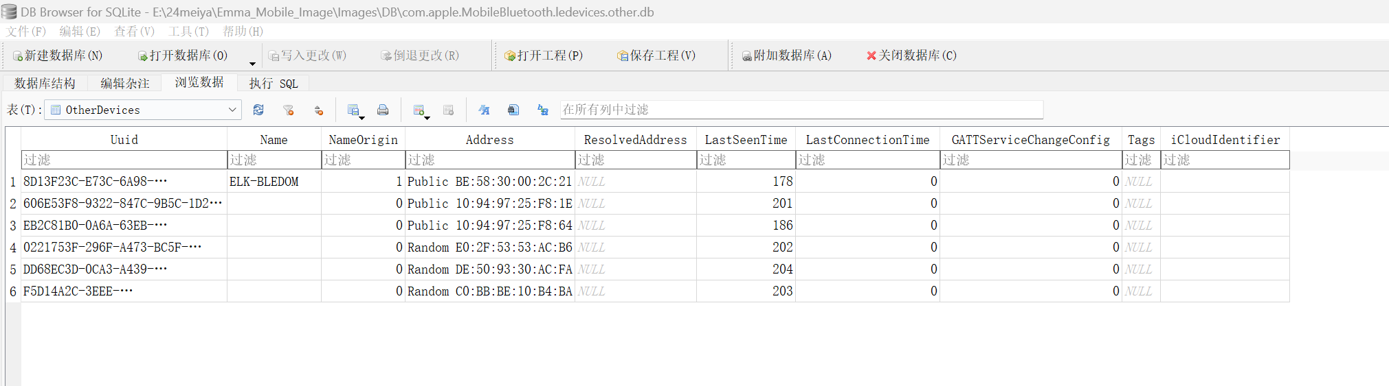 路径:\DB\com.apple.MobileBluetooth.ledevices.other.db,在otherdevices表里看到了题目中的 设备名称