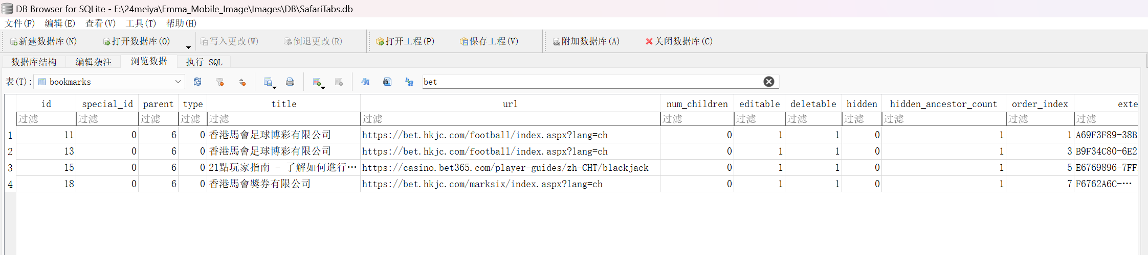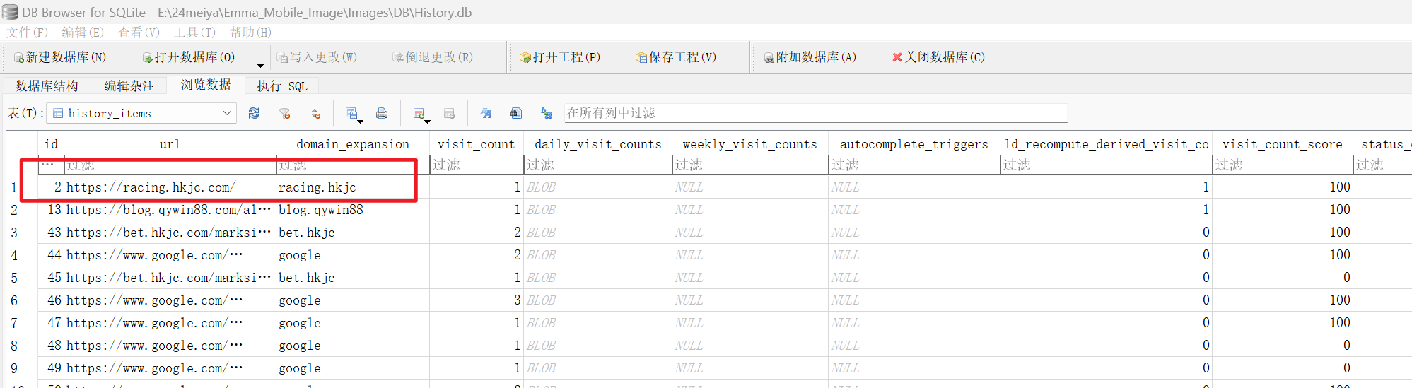 在浏览器的历史记录history.db里看到,搜索bet即可,因为其中有重复的,所以3个