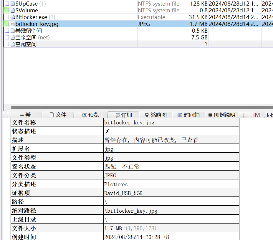 [填空题] 承上题,参考David_USB_8GB.e01,已删除的文件的实际大小(单位:字节 Byte)是多少? 答案格式:只需使用阿拉伯数字回答 (2分)