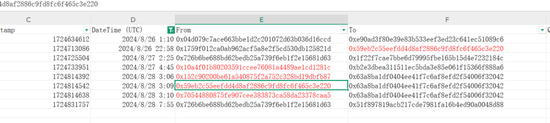 筛选之后,发现有三个地址都交易到了同一个地址,将BCD都可以排除