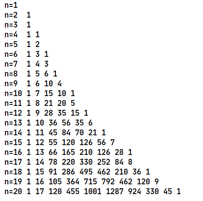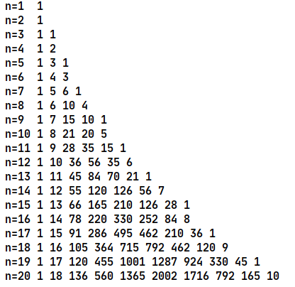 S[i][j]=S[i-1][j]+S[i-1][j-1];