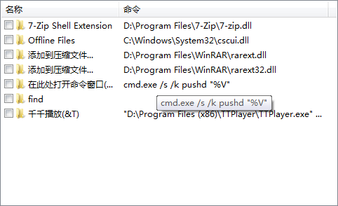 在千千静听下建立名为Extended的值,数据为空即可,发现果然千千静听的右键菜单按住Shift才会出现。
