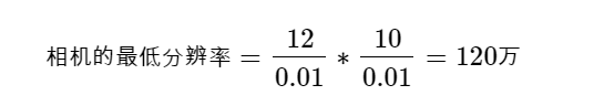不过,为了确保视觉系统的精度和稳定性,一般这个值再乘以3-4,则我们可以选择分辨率为典型值 500 万的相机。