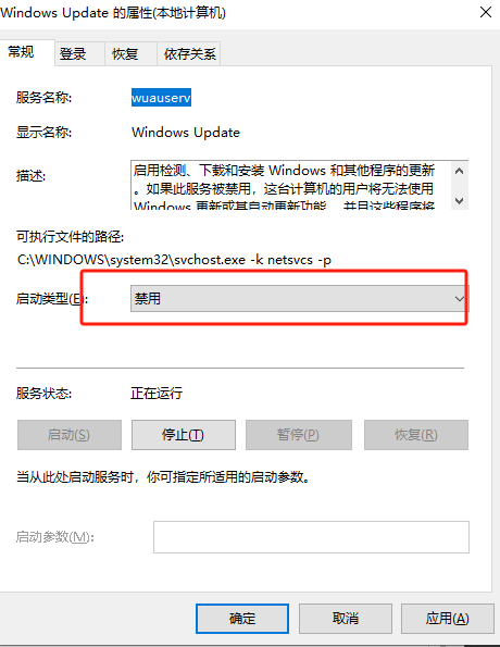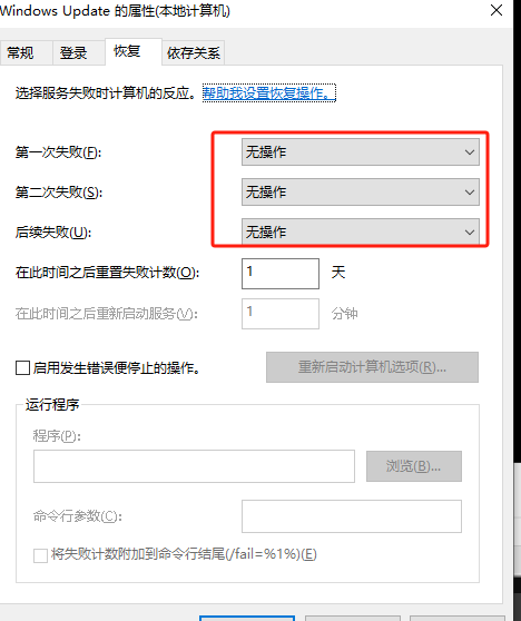 快捷键Win+R,输入services.msc,点击回车。选中“Windows Update”服务,右键点击属性。把启动类型设置为禁用,服务状态设置为停止。在恢复界面,把第一次失败、第二次失败、后续失败都设置为无操作。