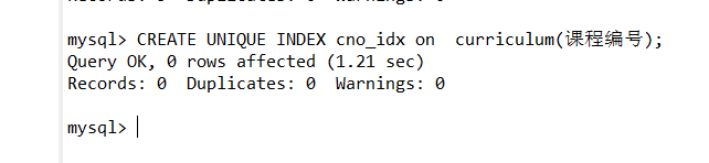2.使用SQL语句为curriculum表的课程编号创建唯一性索引,命名为cno_idx。