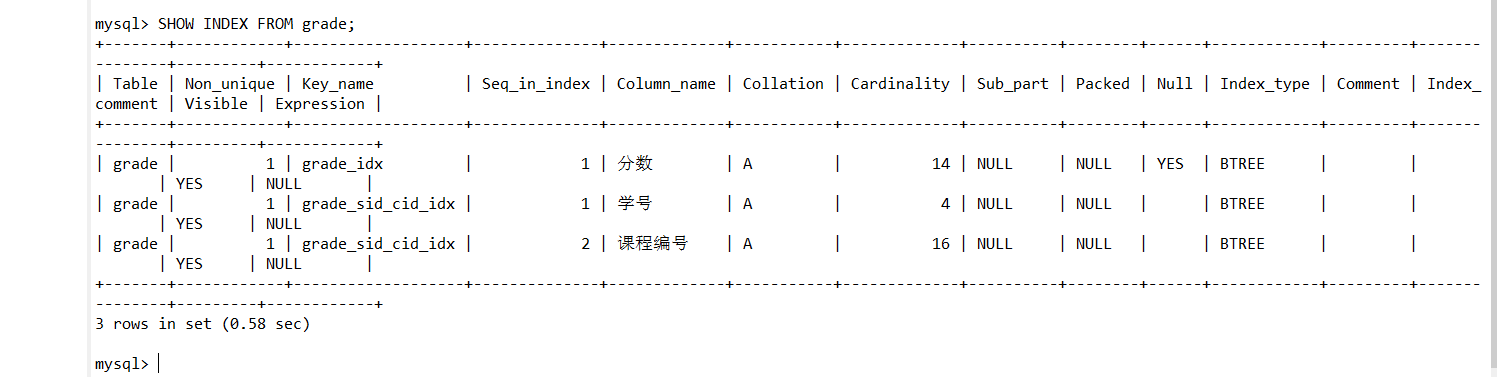 SHOW INDEX FROM grade;