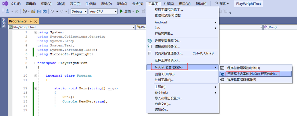 1.您的项目是否引用了正确的 Playwright NuGet 包。