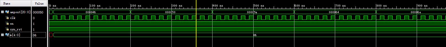 `timescale 1ns / 1ps module not_0if(input [20:0]ampout, input clk,syn_rst,en, output reg[4:0] m); parameter A=21'b1_0000_0000_0000_0000_0000; always@(posedge clk or negedge syn_rst) begin if(~syn_rst) begin m<=0; end else begin if(en)begin if(ampout>A) m <= 20; else if(ampout>(A>>1)) m <= 19; else if(ampout>(A>>2)) m <= 18; else if(ampout>(A>>3)) m <= 17; else if(ampout>(A>>4)) m <= 16; else if(ampout>(A>>5)) m <= 15; else if(ampout>(A>>6)) m <= 14; else if(ampout>(A>>7)) m <= 13; else if(ampout>(A>>8)) m <= 12; else if(ampout>(A>>9)) m <= 11; else if(ampout>(A>>10)) m <= 10; else if(ampout>(A>>11)) m <= 9; else if(ampout>(A>>12)) m <= 8; else if(ampout>(A>>13)) m <= 7; else if(ampout>(A>>14)) m <= 6; else if(ampout>(A>>15)) m <= 5; end end end endmodule