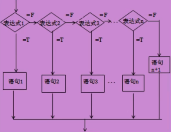 if(布尔表达式1){ // 如果布尔表达式的值1为true将执行的语句 }else if(布尔表达式2){ // 如果布尔表达式2的值为true将执行的语句 } else if(布尔表达式3){ // 如果布尔表达式3的值为true将执行的语句 }else{ // 如果布尔表达式的值为false将执行的语句 }