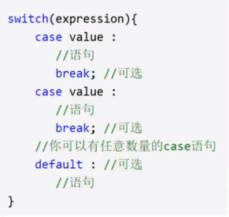 - switch case 语句判断一个变量与一系列值中某个值是否相等,每个值称为一个分支。
