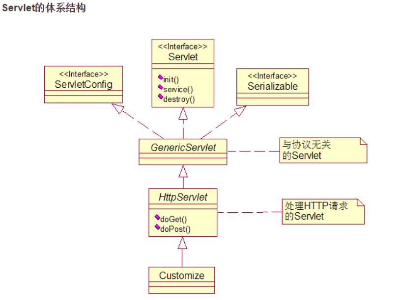 HttpServlet是子类,当然就具有GenericServlet的一切特性,还添加了doGet, doPost, doDelete,