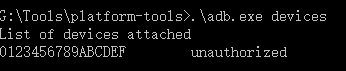 2.adb devices显示unauthorized,按照网上的说法是因为在安卓端,尚未允许计算机对设备进行调试,此时我未接屏幕所以看不到。