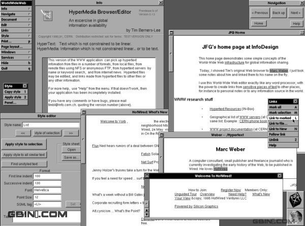 WorldWideWeb 1991年,正式发布的WorldWideWeb是全球最早的一款浏览器,由Tim Berners-Lee(万维网之父)创建与欧洲核子物理实验室,后来改名为Nexus,特点是可以兼容Unix和Microsoft Dos的,但是还不支持图片的显示,虽然功能有限,但在当时却非常流行。