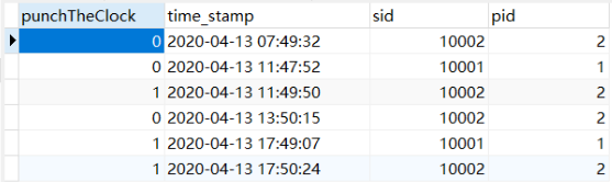 CREATE DEFINER=`root`@`%` PROCEDURE `punch_in`(IN ptype tinyint,IN snum int,IN pnum int,OUT result INT)
