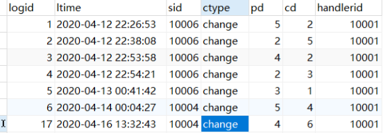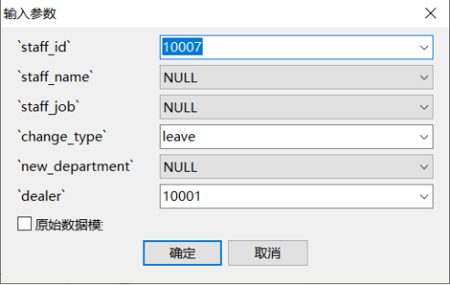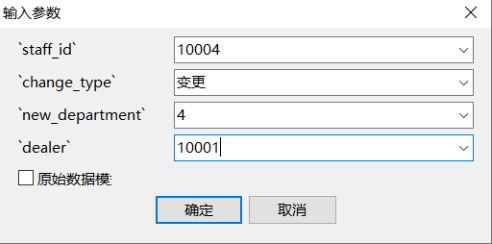 INSERT jobchanged(ltime,sid,ctype,pd,cd,handlerid) values(NOW(),staff_id,change_type,old_department, new_department,dealer);