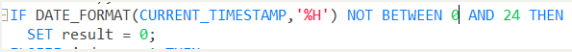 IF DATE_FORMAT(CURRENT_TIMESTAMP,'%H') NOT BETWEEN 0 AND 24 THEN