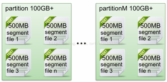 每个Topic的Partition的是一个大文件夹,里面有无数个小文件夹segment,但partition是一个队列,队列中的元素是segment,消费的时候先从第0个segment开始消费,新来message存在最后一个消息队列中。对于segment也是对队列,队列元素是message,有对应的offsite标识是哪个message。消费的时候先从这个segment的第一个message开始消费,新来的message存在segment的最后。