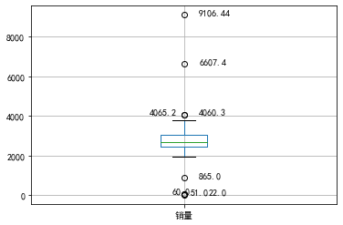 销量 count 200.000000 mean 2755.214700 std 751.029772 min 22.000000 25% 2451.975000 50% 2655.850000 75% 3026.125000 max 9106.440000 销量 9084.44