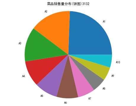 plt.title('菜品销售量分布(饼图)3132') #设置标题