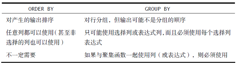 group by 子句中列出的每一列都必须是检索列或有效的表达式,不能是聚集函数