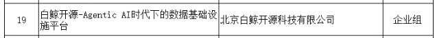 白鲸开源数据基建平台荣登“创客北京 2025”企业组TOP150,共同助 Agentic AI 行业变革