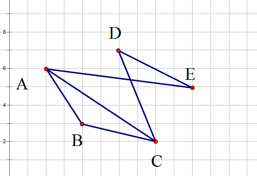 对于上图来说,按时间顺序相遇的依次是AE,BC,DE,AC,AB,DC。(这些都属于直接相遇)