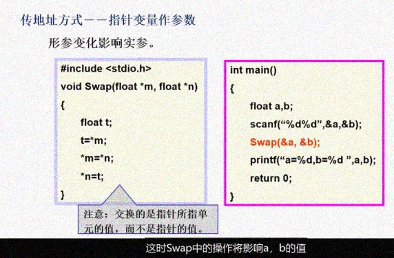 - ①传值方式:参数为整形、实型、字符型: 把实参的值传送给函数局部工作区相应的副本中,函数使用这个副本执行必要的功 能,函数 修改的是副本的值,实参的值不变。