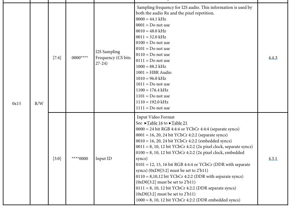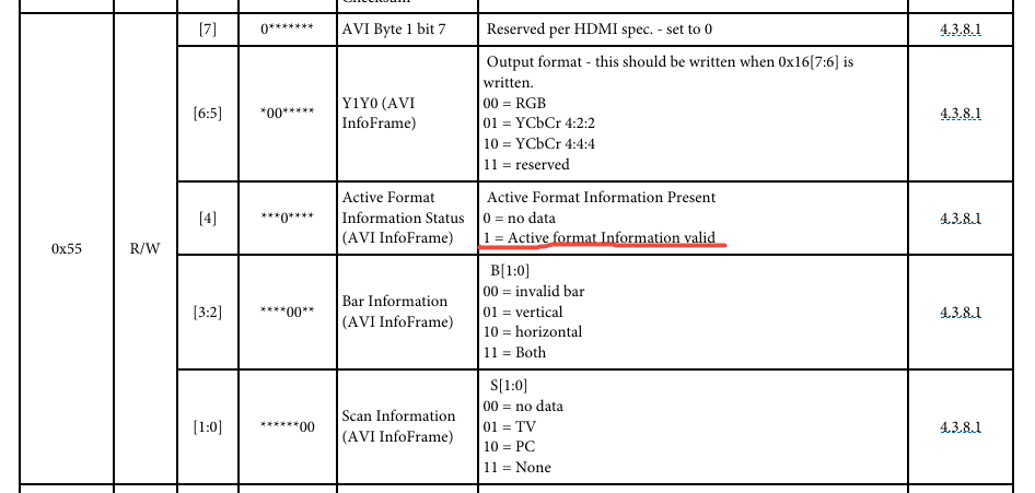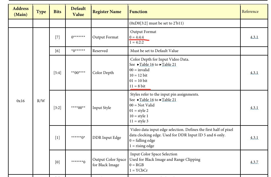 比如我们要设置HDMI 的输出格式是444 8bit,那么就要设置寄存器0x16 的值是0x30(见上面代码第128行)