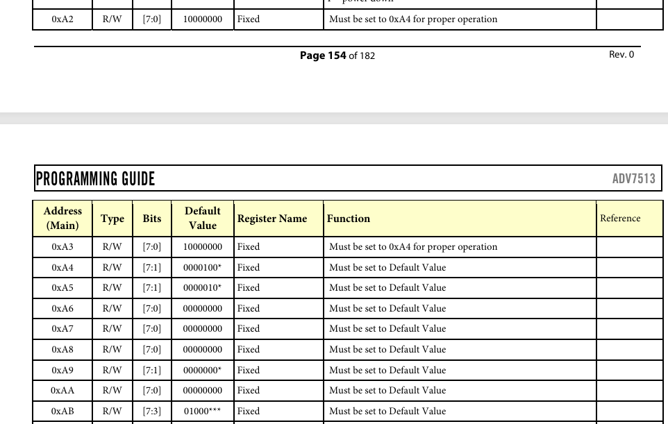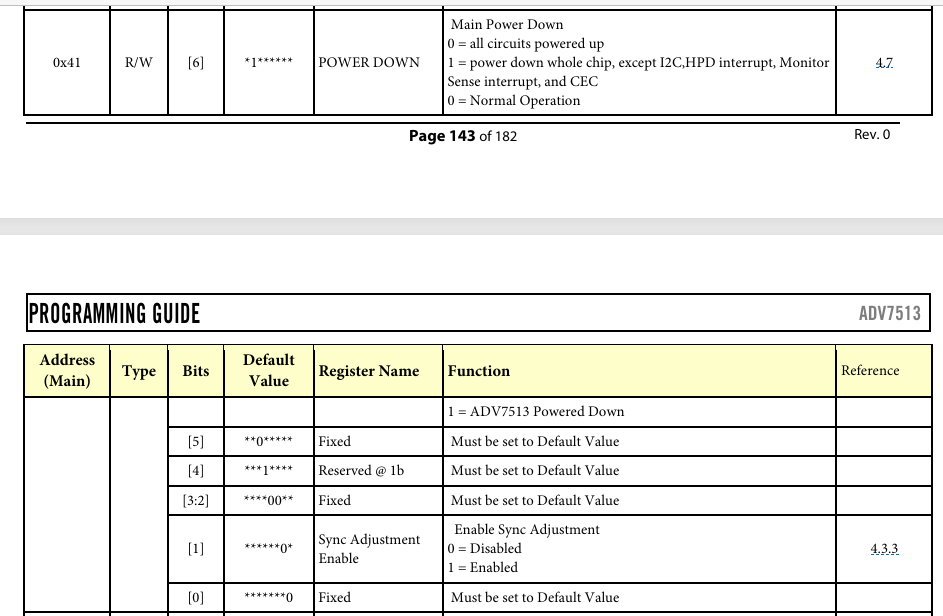 ADV7513的寄存器配置